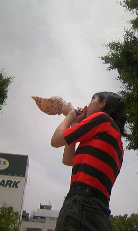 これは皆さんにプレゼントするやつなので、実際には吹けないンですが、公園でフリだけしてみました🐚