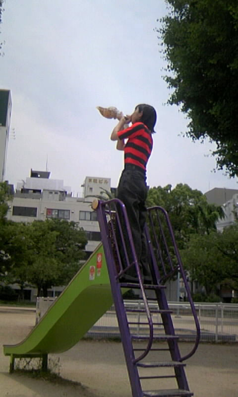 写真でどこまで伝わるかワカンナイけど、ただの滑り台が矢倉みたいに見ぇる。